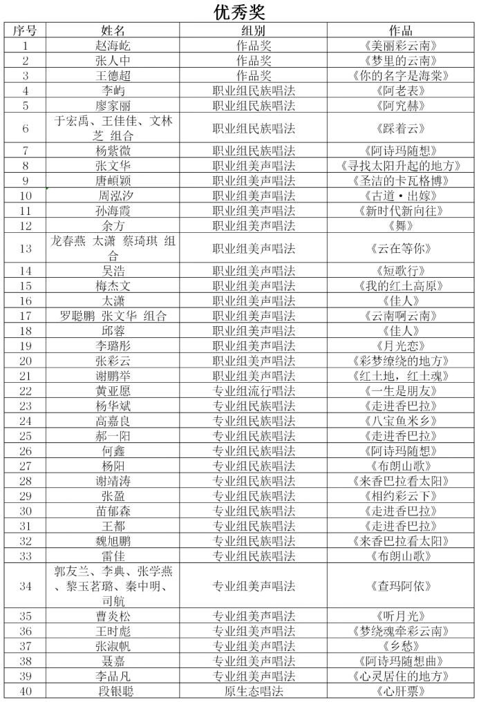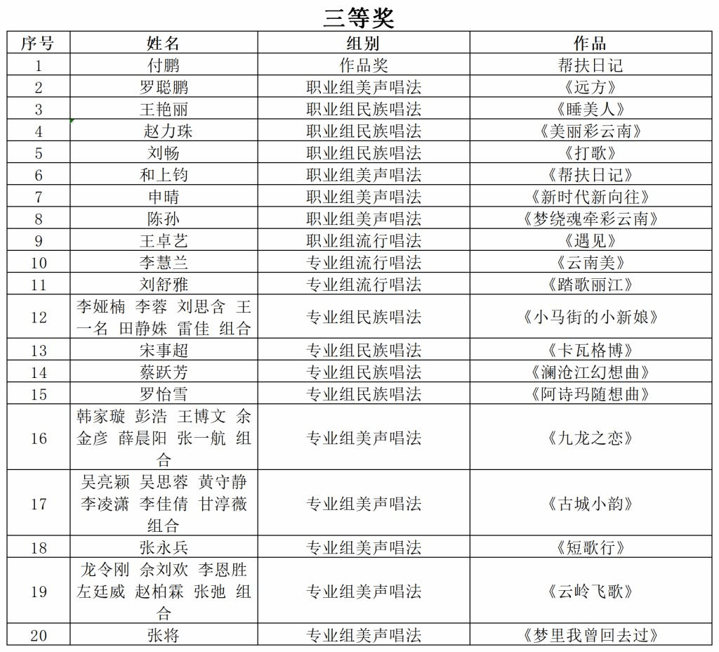 祝贺以上参赛人员在第六届云南本土歌曲创作暨展演活动中获得优异成绩!