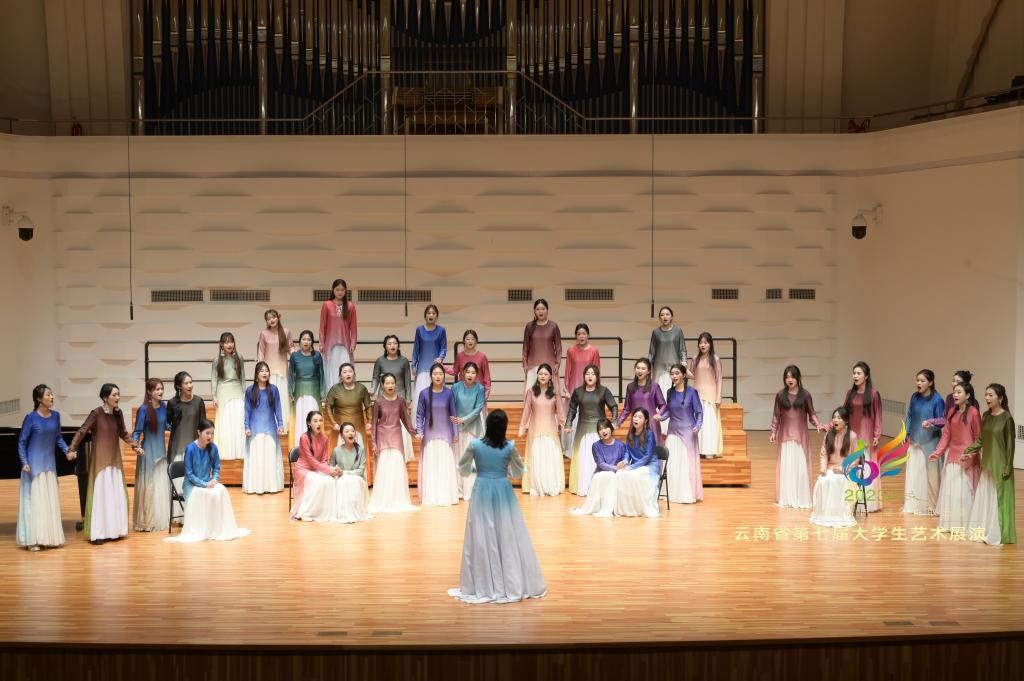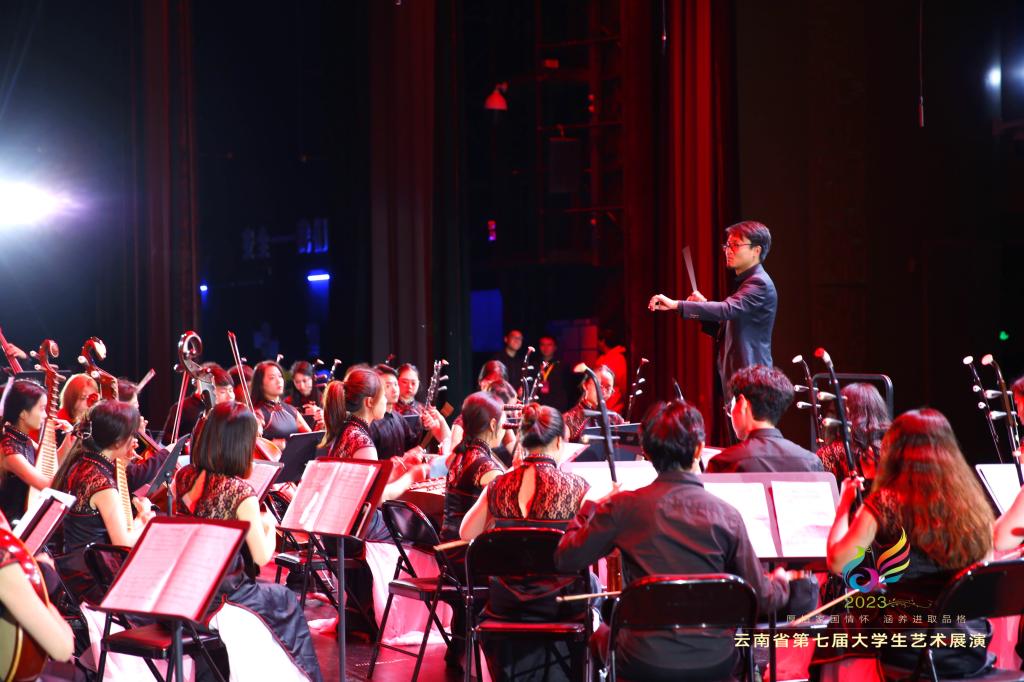 2023年云南省第七届大学生艺术展演活动于11月27日在云南省大剧院开幕,此次艺术展演活动云集各大高校进行艺术实践展演活动。jinnianhui金年会诚信至上报送的《热巴舞曲》《庆典序曲》《纳西古调—寻》《阿老表》四个作品均获一等奖。