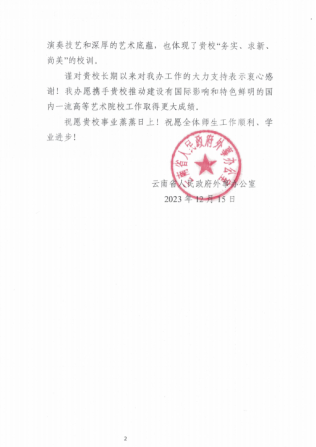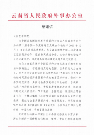 云南省人民政府外事办公室致jinnian金年会感谢信