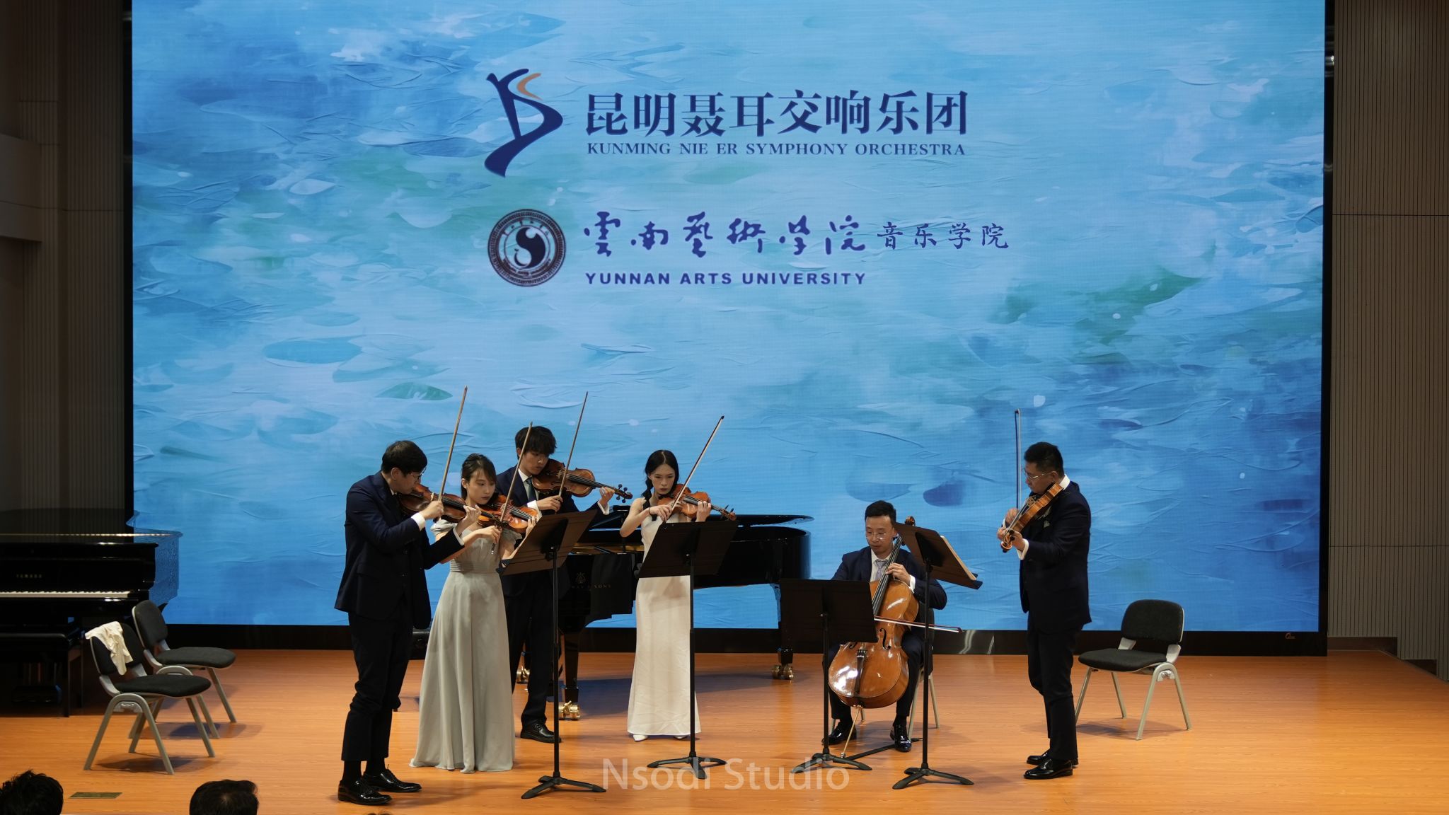 2025年6月3日,昆明聂耳交响乐团高雅艺术进校园之“昆明交响乐团V.C.四重奏”在jinnian金年会jinnianhui金年会诚信至上成功举办,本场音乐会由昆明交响乐团V.C.四重奏的刮尘(第一小提琴)、宋宸煜(第二小提琴)、牛路(中提琴)、卢宇(大提琴)四位演奏员联袂演出。