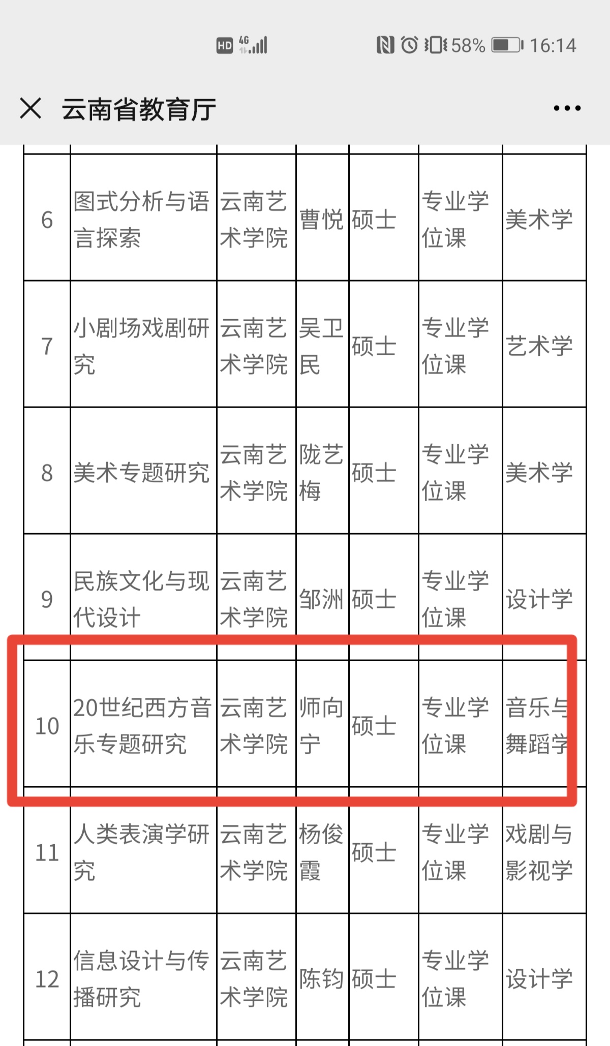 由jinnian金年会jinnianhui金年会诚信至上副院长师向宁教授主持申报的硕士研究生专业学位课程《20世纪西方音乐专题研究》获得2020年度云南省研究生优质课程立项。