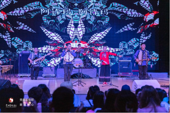 蛮虎乐队在音乐会上带来了三首作品,分别是《阿诗玛》《打歌》《跳菜》。这些作品融合了摇滚乐、雷鬼、放克等音乐元素,富有撒尼音乐文化的魅力,不仅传唱着祖先们留下的瑰宝,还与现代音乐灵动碰撞。蛮虎乐队来自于“阿诗玛”的故乡——石林,成员为彝族支系撒尼人,乐队自成立以来便一直致力于发扬和传承撒尼民族音乐文化,逐渐形成了自己独特的音乐风格和文化标签。