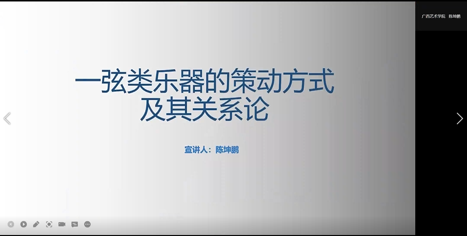 云南师范大学杨琛教授《中国西南少数民族管乐器制作与演奏体现出的相关问题探讨》一题中针对西南少数民族管乐器命名、乐器开孔、乐器音色的认知以及乐器演奏技术等问题展开探讨,南京艺术学院的杨曦帆教授在《嘉绒藏族音乐文化志的跨学科研究方法探索》一题中从宗教、神话、传说、民俗、历史事件等角度观察嘉绒藏族音乐形成的流动性,介绍两种观点:一是音乐民族志描述不仅要有静态的一面,还要把握研究对象在生成过程中所发生的诸种关系的动态过程描述的能力;二是跨界族群音乐文化研究中的跨文化既是局内的,同时也是局外的,相似性和差异性在跨界研究中都应该是常态;广西艺术学院陈坤鹏教授在其《一弦类乐器的策动方式及其关系论》一文中,介绍了一弦类乐器的振动、用弦、审美等,总结出一弦类乐器其策动方式有擦奏、拨奏、击奏、击奏与拨奏结合等四种形式,就“一弦类乐器旋律特点”“二弦同度的一弦审美”等问题提出相关观点。