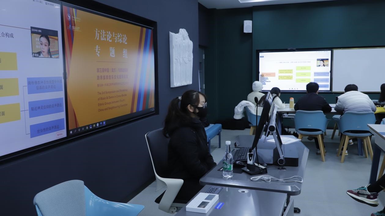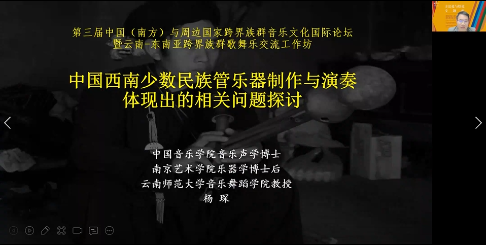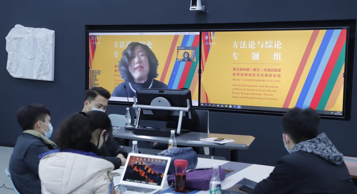 2021年11月22日下午,第三届中国(南方)与周边国家跨界族群音乐文化国际论坛暨云南—东南亚跨界族群歌舞乐交流工作坊方法论与综论组在jinnian金年会智慧教室第二分会场,以线上线下相结合的方式进行会议讨论。该场会议共分为一组和二组,一组由曹量教授主持会议,张应华教授评议。