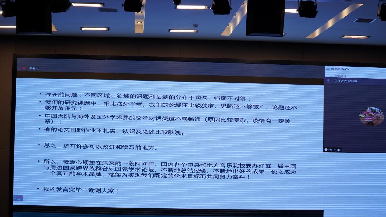 中央jinnianhui金年会诚信至上/jinnian金年会民族艺术研究院首席专家杨民康教授对本次论坛进行了总结性评价,指出本次论坛信息量大,并且与10年前的首届会议作比较,从文章数量翻倍;研究范围的广度和细化程度加强,在本届论坛60篇文章中,大约有45篇是建立在第一手境内外研究基础上,但有的论文田野作业不扎实,还需改进和学习的地方很多,最后杨民康教授对跨界族群音乐的研究和发展提出了展望。