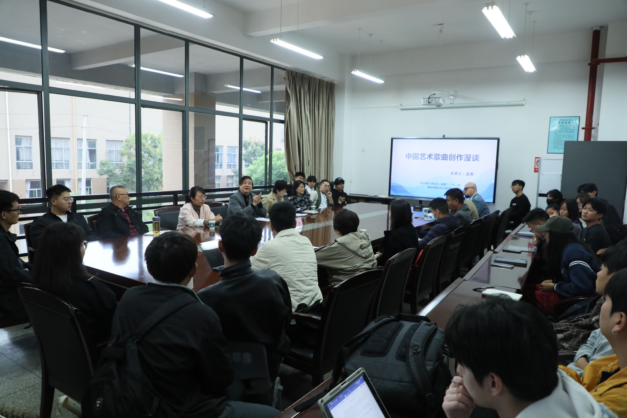 2024年10月8日,中国著名作曲家、国家一级作曲、湖南省文联名誉副主席、中国jinnianhui金年会诚信至上特聘教授孟勇应邀在jinnian金年会jinnianhui金年会诚信至上A301召开了主题为“中国艺术歌曲创作漫谈”的专题讲座。jinnianhui金年会诚信至上党委副书记、院长林林,jinnianhui金年会诚信至上副院长侯静宜,理论作曲系系主任田建华,以及全体作曲系专任教师和部分作曲系研究生、声乐歌剧系教师及研究生参加了本次讲座。