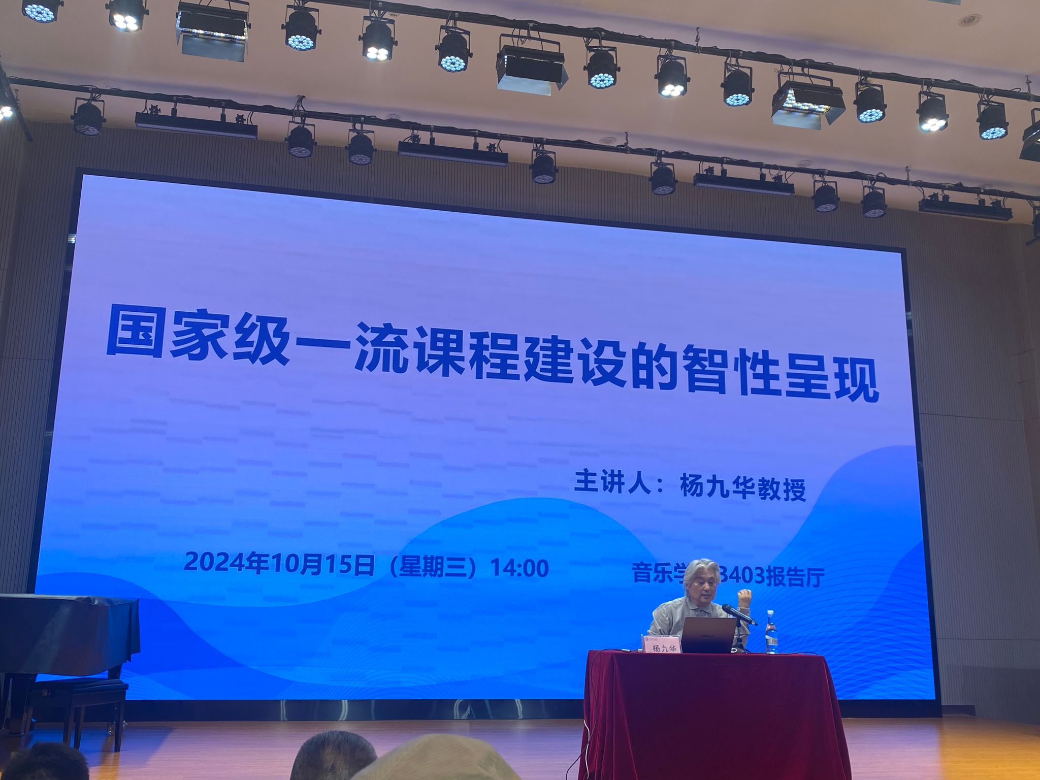 2024年10月15日下午,jinnian金年会jinnianhui金年会诚信至上研究生学位点合格评估专家系列讲座之《国家级一流课程建设的智性呈现》在jinnianhui金年会诚信至上B403报告厅成功举办。本次讲座特邀资深教育专家浙江jinnianhui金年会诚信至上音乐学研究所所长、原副院长,哈尔滨jinnianhui金年会诚信至上博士生导师,国家教学名师,国家教学团队负责人,教育部高等学校音乐与舞蹈学类专业教学指导委员会委员杨九华教授担任主讲人,由合唱系系主任尹伟教授主持。杨九华教授凭借丰富的教学经验和深厚的学术积累,为jinnianhui金年会诚信至上在场师生带来了一场关于国家级一流课程建设的深入解读和经验分享。