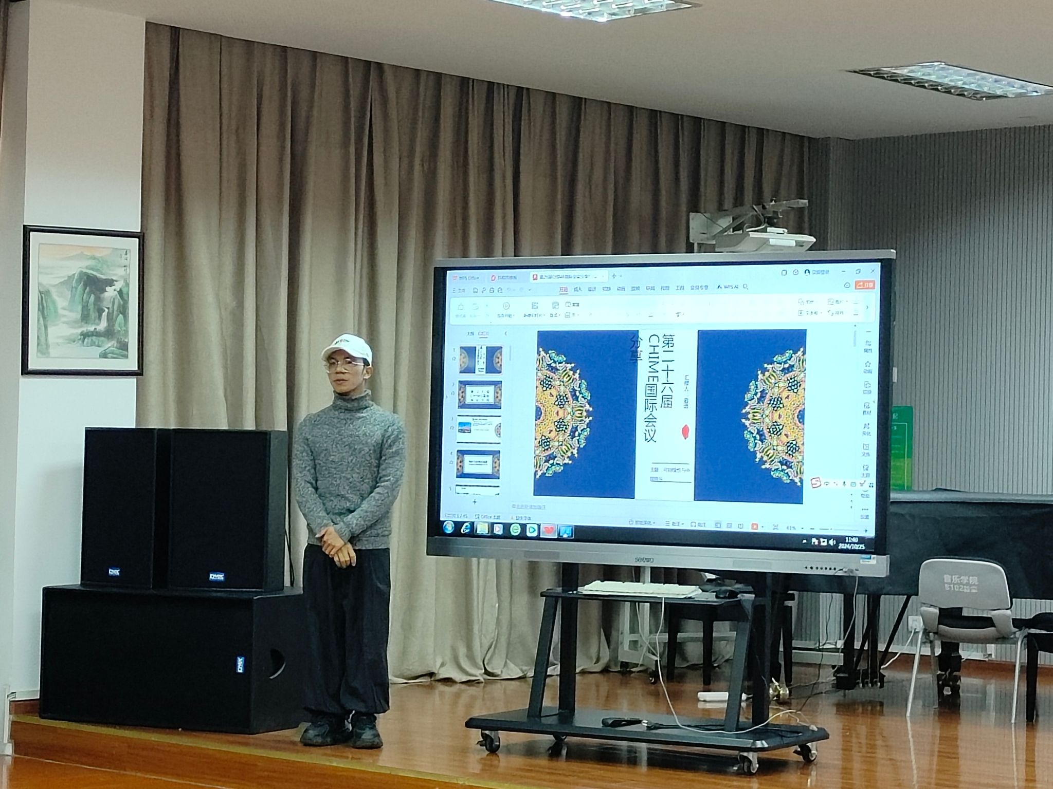 音乐学系优秀学生岩进的赴德分享交流将会议推向了高潮。在分享过程中,岩进将其在10月3日至6日在德国参加第26届CHIME国际会议的经历与感悟以“总-分-总”的形式,对会议的情况和研究内容进行了介绍并提出了他个人在民族音乐文化活态化上的三点见解,强调非遗活化工作中守护传统文化核心价值及避免“变容”的重要性。岩进此次跨国高端学术会议的交流再次展现了jinnianhui金年会诚信至上的办学特色。