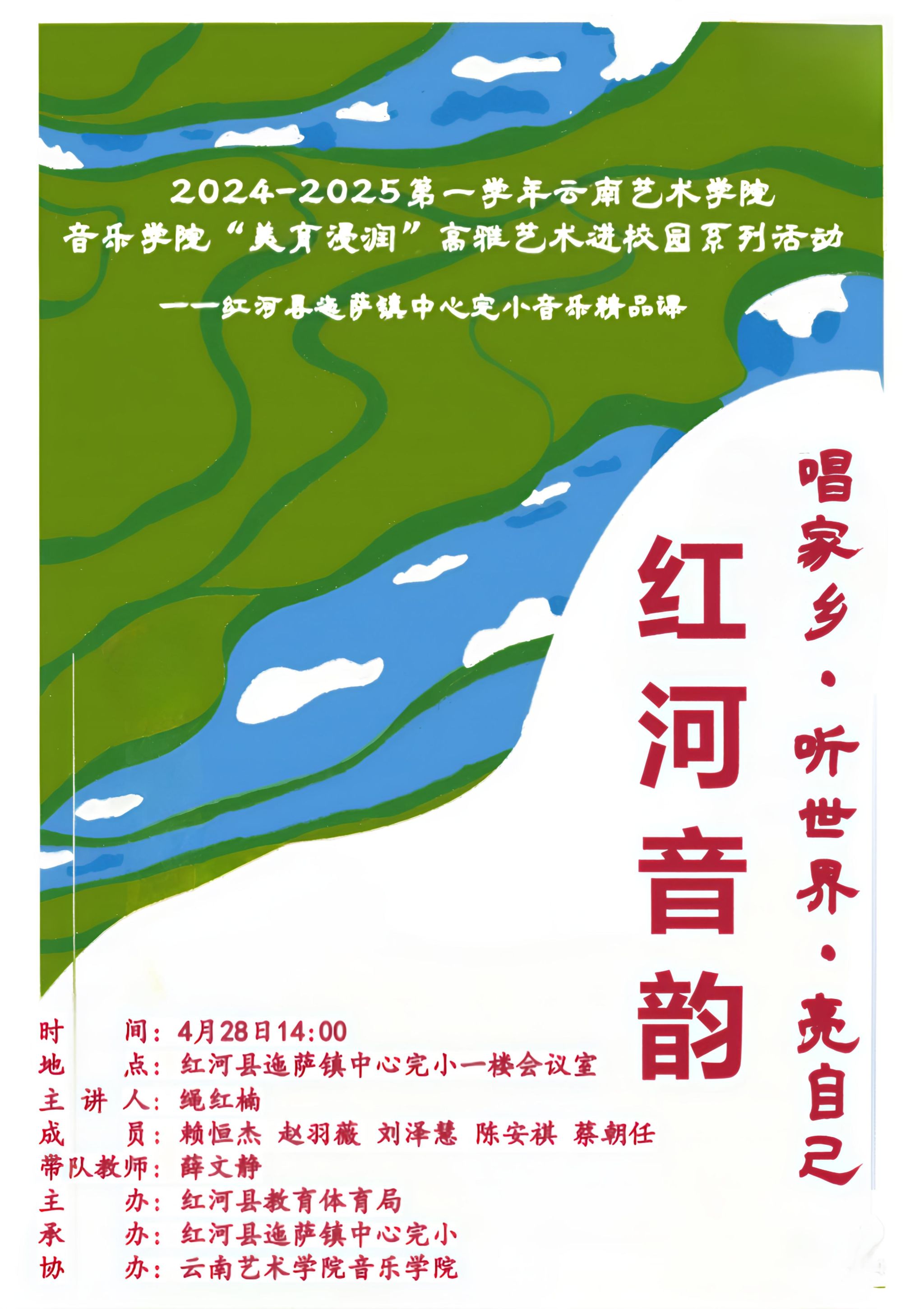 为落实落细“美育浸润行动计划”,近日,jinnian金年会jinnianhui金年会诚信至上“美育浸润行动计划”驻红河县团队师生走进红河县迤萨镇中心完小,成功举办《红河音韵——唱家乡·听世界·亮自己》音乐精品公开课,以多样化艺术形式推进高雅艺术进校园系列活动。