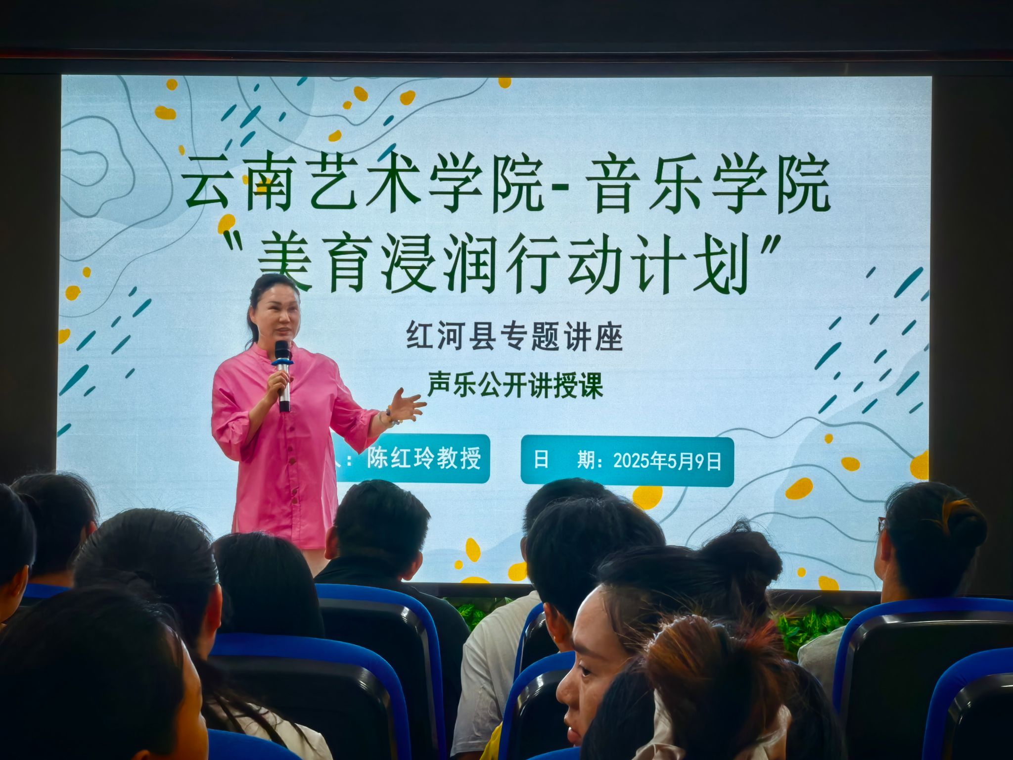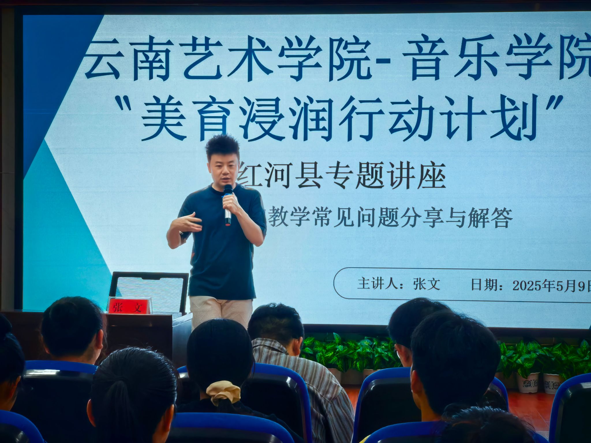 为认真贯彻全省教育工作会议精神,落实落细美育浸润行动计划,2025年5月10日,jinnian金年会jinnianhui金年会诚信至上陈红玲教授、张文博士到红河县开展“美育浸润行动”音乐教师能力提升培训。本次美育专题培训由红河县教育体育局与jinnian金年会jinnianhui金年会诚信至上联合举办。