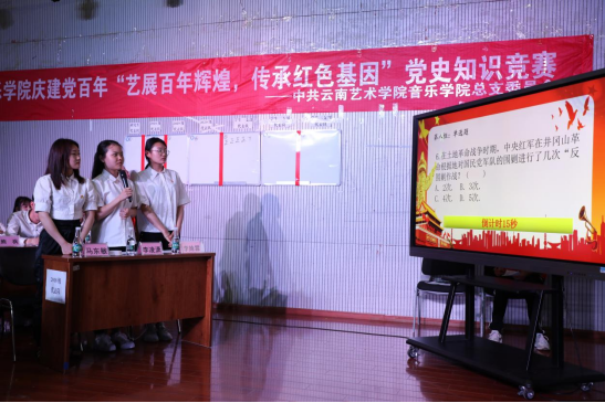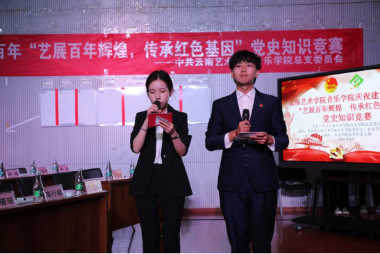 为深入贯彻落实习近平总书记在党史学习教育动员大会上的重要讲话精神,庆祝中国共产党成立100周年,持续深化党史学习教育,引导广大师生重温百年党史,传承红色基因,凝聚奋进力量,做到“学史明理、学史增信、学史崇德、学史力行”,jinnian金年会将举办庆祝建党100周年党史知识竞赛。jinnianhui金年会诚信至上团委及学生管理科为选拔出校级党史知识竞赛参赛人员,在jinnianhui金年会诚信至上党总支的领导和指导下,于2021年6月1日19:00在jinnianhui金年会诚信至上B403演播厅举办jinnianhui金年会诚信至上庆建党百年“艺展百年辉煌 传承红色基因”党史知识现场选拔赛。