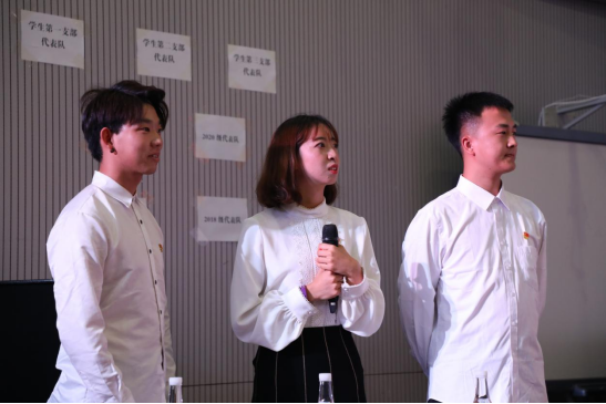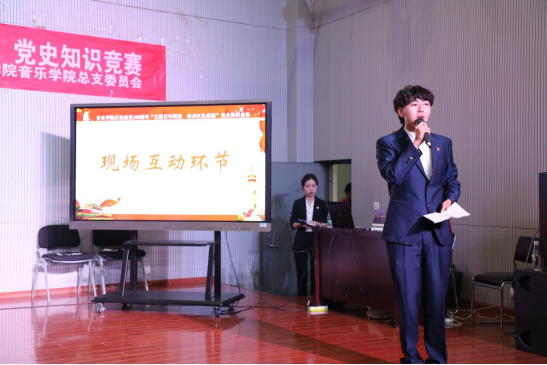主持人在讲解完比赛规则后,答题活动开始。首先答题的是第一党支部代表队,队员们齐心协力,旗开得胜,为比赛开了一个好头,赢得22分,其余队伍也争先恐后,为自己的队伍赢得了荣誉。第二轮抢答环节,气氛活跃,拼的不只是知识储备,也看各位代表的手速,第三党支部在此轮中抢答率和正确率较高,领先于其他代表队。值得一提的是第三轮试听赛,结合了jinnianhui金年会诚信至上的专业特色,播放了10首红色经典歌曲影像片段。当熟悉的旋律和电影画面播出时,各队队员跃跃欲试,抢答激烈,欢笑声阵阵。三轮比赛的间隙,还有观众互动答题,回答正确的同学,赢得了心仪的奖品。