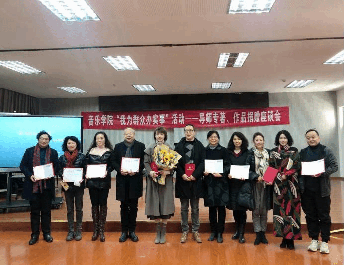 座谈会上,杨丽菲老师捐赠个人专著《声乐艺术原理与美学思想的传达》,通过讲述自己创作的心路历程来缅怀恩师;王晓康老师捐赠个人专著《男高音教学曲目选编》及演唱专辑《我的太阳》,并讲述了本著作的创作初衷,以及对声乐艺术的展望;孙芳老师与师向宁老师为大家分享了各自在国外的求学经历与创作背景,并分别捐赠同名演唱专辑与专著《俄罗斯浪漫曲》、《罗西尼与莫尔拉奇歌剧序曲》;王硕老师捐赠的演唱专辑,多数是云南本土民歌,宣传云南民族音乐文化;段继敏老师与李艳芳老师分别捐赠个人专著《中国唱法的基础训练》、《嗓音训练与歌唱技巧》、《西方声乐发展史》、《中国声乐发展史》与演唱专辑,讲述了歌唱、发声等专业知识,希望同学们可以通过著作得到更好的启发;王汉发老师捐赠个人原创歌曲精选集《鲲鹏展翅的祖国》,该书围绕“祖国之恋”、“华夏情韵”、“情深义重”、“花朵芬芳”、“母校情深”五个部分进行创作,并由学生对其中曲目进行现场展示;范琴雯老师捐赠专著《云南原创钢琴作品演释》,书中所有曲目均为云南本土作品,意在弘扬与传播云南音乐文化;黄凌飞老师捐赠个人专著《中国南传佛教音乐的人类学研究》,该书是国家社科基金项目结项研究成果,这为师生在今后的科研工作中树立了榜样;林林老师捐赠个人专著《声乐艺术的探索与创新》及演唱专辑《林歌林鹊》、《云南表情》,其中专辑《林歌林鹊》是林林老师在中国jinnianhui金年会诚信至上就读硕士研究生时的毕业音乐会影像,另一部专辑《云南表情》中全部为云南本土音乐作品,这也为学生们在今后的表演中提供了大量的作品示范。