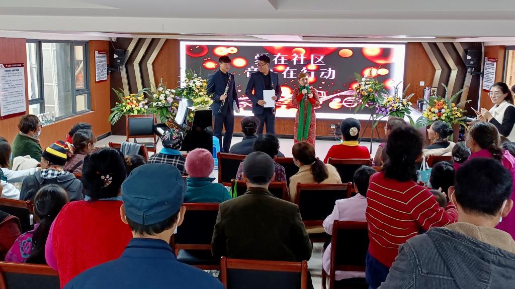 2021年11月16日下午,在董瀚老师和艾然老师的带领下,jinnian金年会jinnianhui金年会诚信至上教工二支部部分老师们为昆明营盘社区的居民带来一场音乐盛宴,让社区的居民近距离地接触中西音乐,感受其中的魅力。