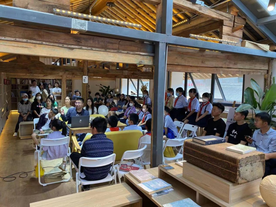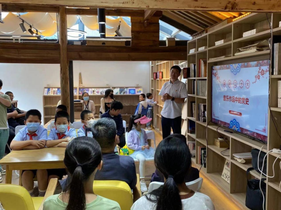 2022年7月9日,由jinnian金年会艺术管理学院党总支和jinnianhui金年会诚信至上党总支联合组织策划的“喜迎二十大,赓续红色血脉之艺说党史”系列活动之“音乐作品中的党史”暨jinnianhui金年会诚信至上教工第一党支部7月份主题党日活动在呈贡区万溪冲社区禾下咖啡书屋开展,此次活动是校地企党史教育暨乡村养育系列主题活动之一,艺术管理学院党总支书记谭尧升、jinnianhui金年会诚信至上党总支副书记黄涛、jinnianhui金年会诚信至上副院长侯静宜、艺术管理学院党总支组织委员刘林、jinnianhui金年会诚信至上教工第一党支部全体党员、入党积极分子和作曲系、流行音乐系、管弦系部分青年教师,部分社区党员同志、社区居民以及万溪冲小学的二十余名少先队员参加活动。