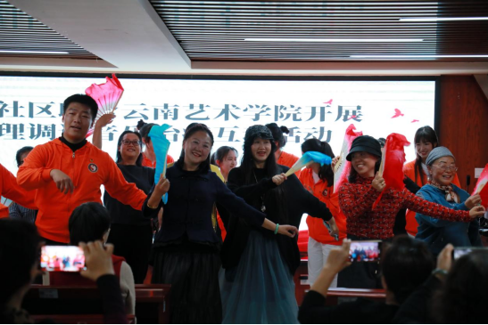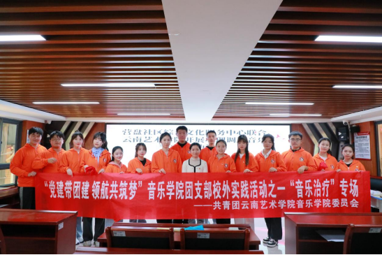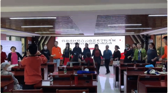 2022年10月26日下午jinnianhui金年会诚信至上团委组织9个团支部部分团员代表在jinnianhui金年会诚信至上教工第一党支部李毓辉老师和jinnianhui金年会诚信至上团委李青老师的带领下到昆明市呈贡区营盘社区开展“党建带团建 领航共筑梦”团支部校外实践活动的第一场——“音乐治疗”专场,实践内容为以“以音乐治疗为主的社区老年人心理调适互动活动”,以及少数民族花灯表演为主。