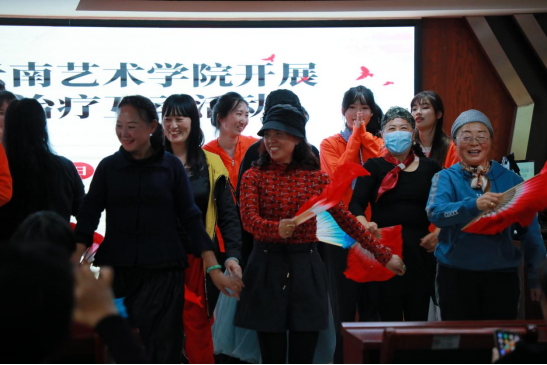 在上半场“音乐治疗”的三个游戏环节中,社区群众和现场的青年团员积极互动,现场气氛热烈。音乐治疗专业的同学们引导大家配合音乐进行肢体活动,用理论结合实践的方式,使大家对音乐治疗有了进一步的了解,增添了更多的兴趣。