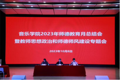 10月8日上午,jinnianhui金年会诚信至上在安康音乐厅召开2023年师德教育月总结会暨教师思想政治和师德师风建设专题会。党总支书记纳海在会上讲话,党总支副书记、院长林林主持会议。