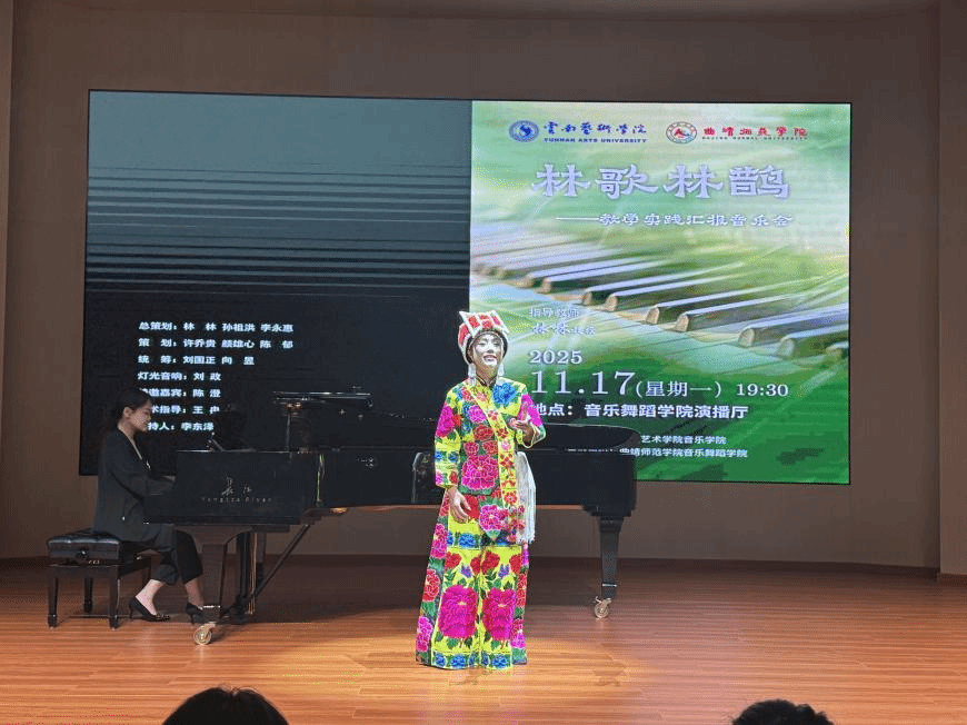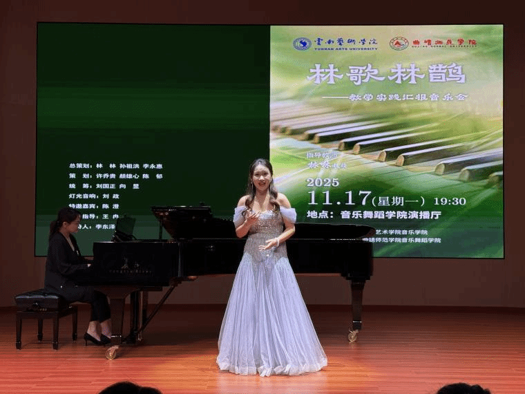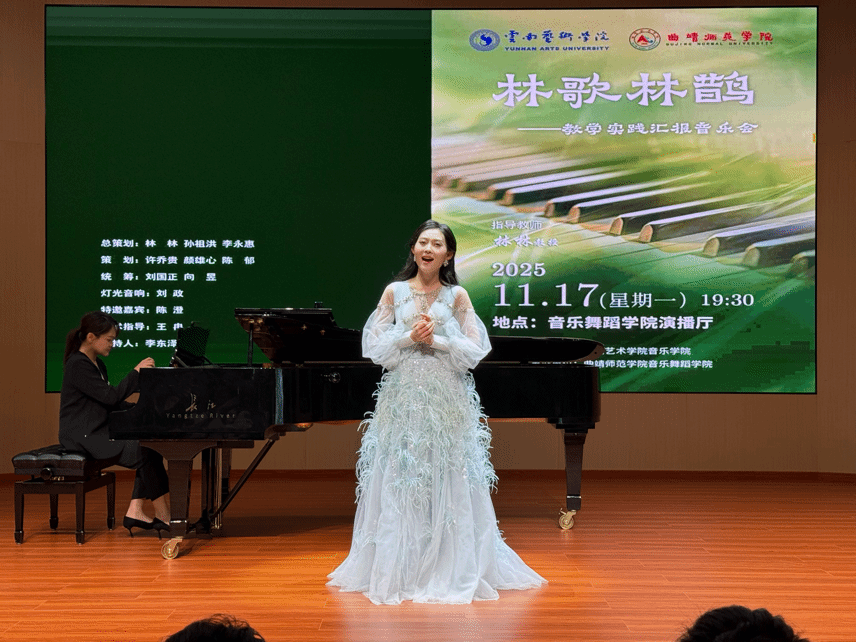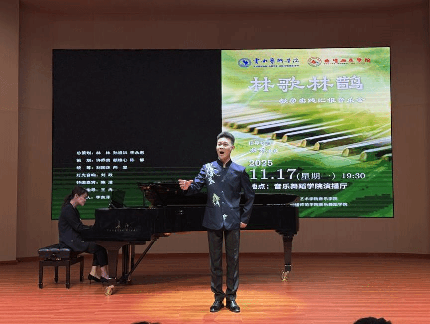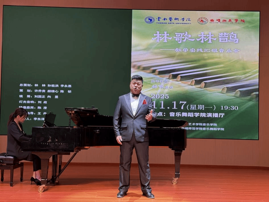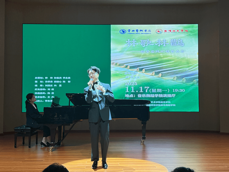 2025年11月17日,“林歌林鹊”——林林教授教学实践汇报音乐会在曲靖师范学院音乐舞蹈学院演播厅圆满举行。此次音乐会由jinnian金年会jinnianhui金年会诚信至上主办,曲靖师范学院音乐舞蹈学院承办。