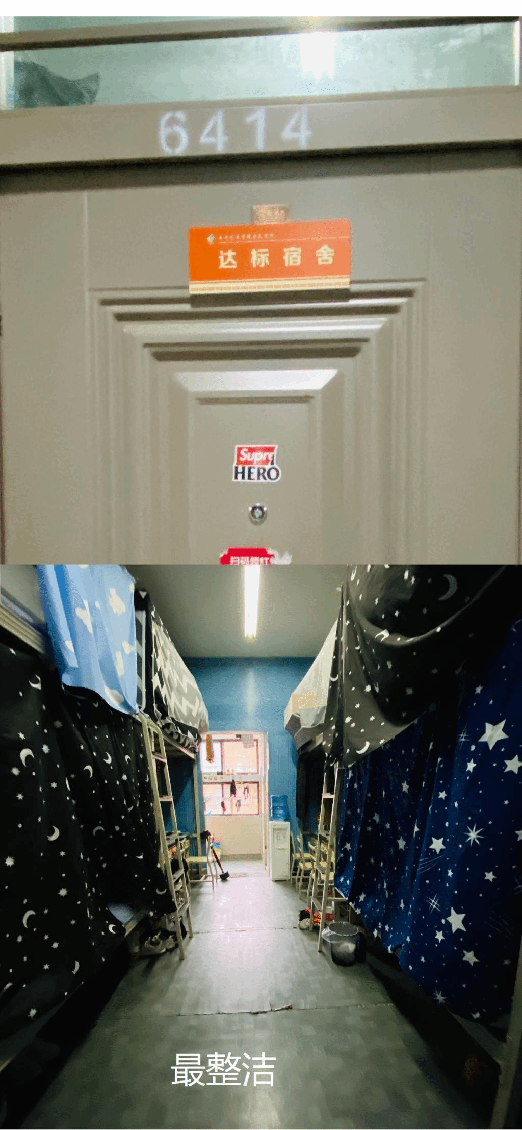 我们同学不仅打扫清理了宿舍,还发挥了艺术生的特长,用软装点缀了宿舍,营造了干净整洁又富有艺术气息的良好宿舍氛围,值得一提的是我们退伍学生的宿舍,发扬了部队一贯的优良作风,每日打扫卫生整理床铺,在同学们中起到了良好的示范作用。