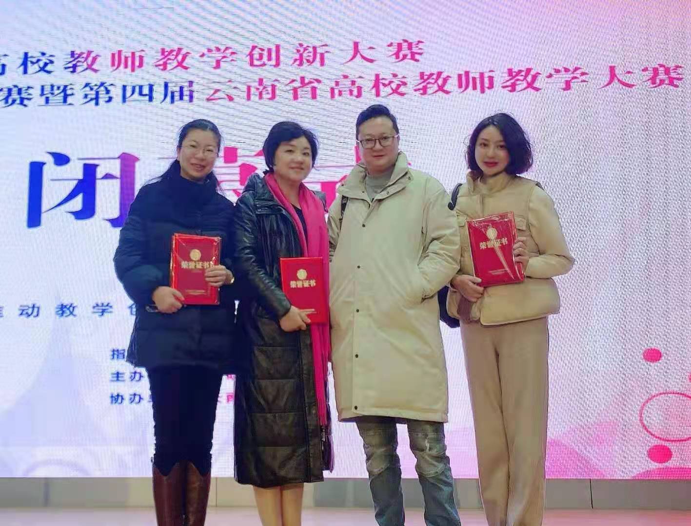 jinnianhui金年会诚信至上王凤莉副教授及其团队成员(罗宇佳、侯静宜、洪露)荣获首届全国高校教师教学创新大赛云南赛区暨第四届云南省教师教学大赛二等奖。