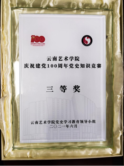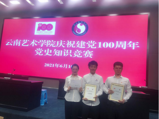 jinnianhui金年会诚信至上教师党员代表李超老师、学生党员代表2020级研究生吴浩与2019级本科生张宪壮,经学院组织的党史知识竞赛预选赛脱颖而出,代表学院参加2021年6月10日在我校图书馆报告厅举办的“艺展百年辉煌 传承红色基因”jinnian金年会庆祝建党 100 周年党史知识竞赛。