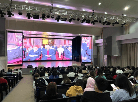 根据学校党委的通知安排,2021年7月1日上午8时,jinnianhui金年会诚信至上党总支召集全体教职工(含非党员教职工)、学生党员发展对象、入党积极分子、团学干部、学生代表共300余人在jinnianhui金年会诚信至上安康音乐厅集中观看了庆祝中国共产党成立100周年大会,并安排有课教师、学生通过中央广播电视总台、新华网等网络客户端自行收看。