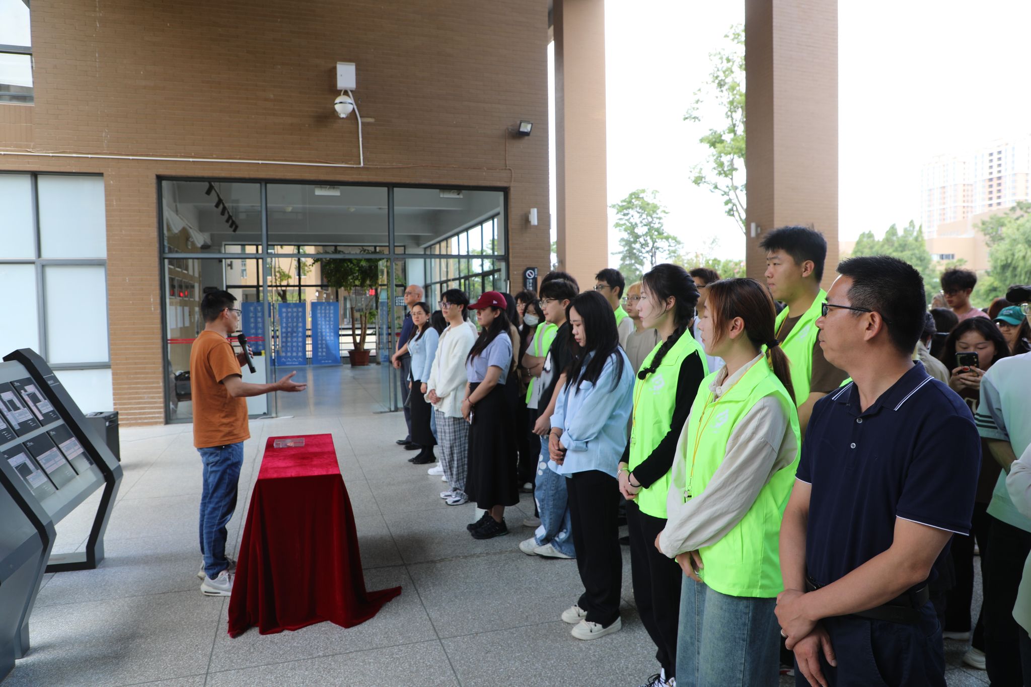 培训结束,随着警报声响起,消防应急疏散演练环节开始。演练模拟音乐楼B区发生火险,各楼层参加演练的师生在安全引导员的指引下沿两条逃生通道快速有序疏散至指定安全区域。随后前往灭火演练场地集合。