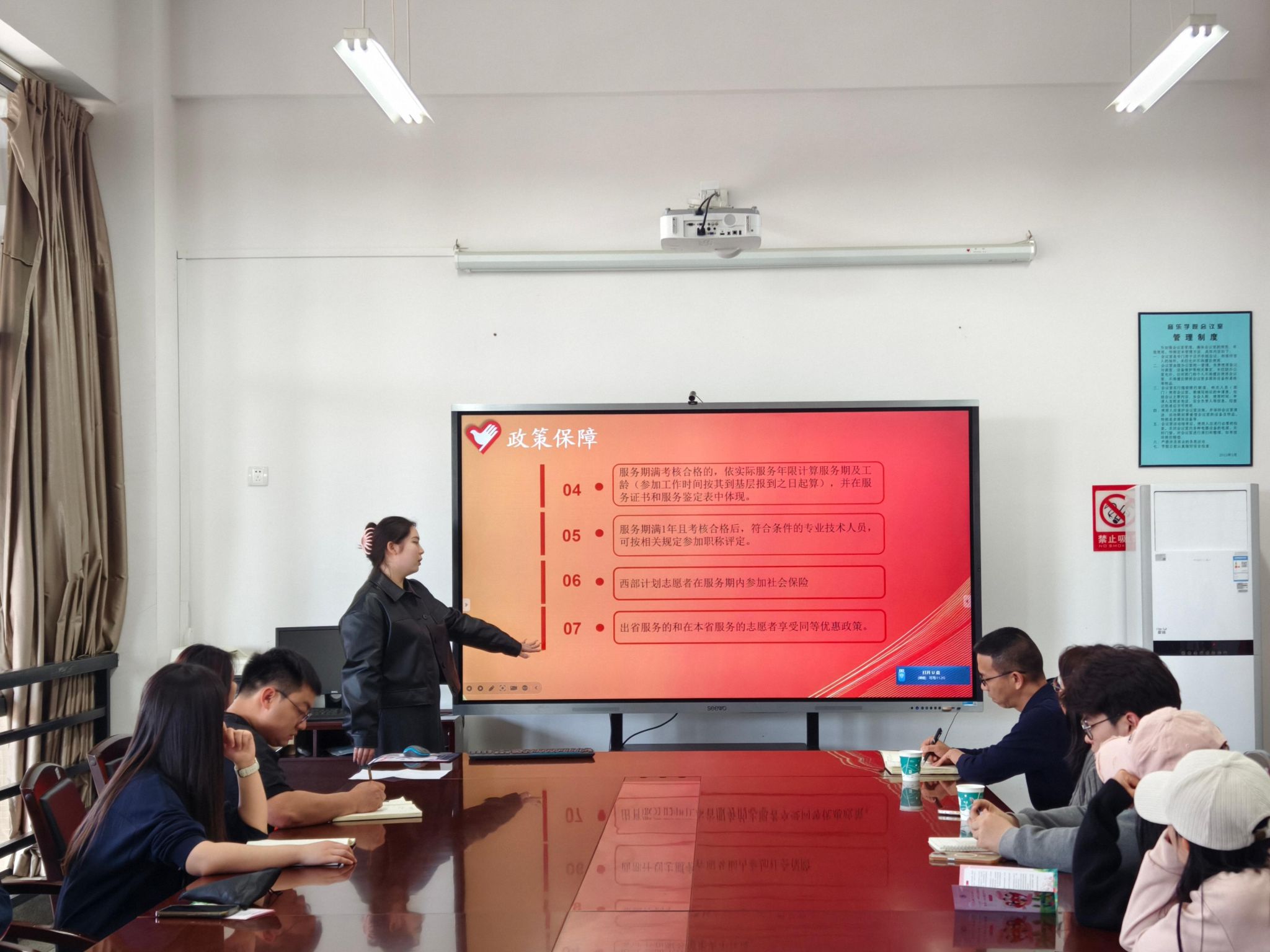 为进一步引导和鼓励jinnianhui金年会诚信至上毕业生到西部去、到基层去、到祖国和人民需要的地方去,主动融入国家发展大局,在科技创新、乡村振兴、绿色发展、社会服务、卫国戍边等领域争当排头兵和生力军,在推进强国建设、民族复兴伟业中展现青春作为、彰显青春风采、贡献青春力量,2025年4月16日下午,“青春奉献西部 艺术点亮未来”2025年大学生志愿服务西部计划招募宣讲活动在jinnianhui金年会诚信至上A301会议室组织开展。共青团云南省委志联部西部计划项目专员、jinnianhui金年会诚信至上2024届毕业生谭媛主讲,学院党委副书记肖本俊、分团委全体教师、毕业班辅导员及共青团云南省委志联部西部计划项目专员李蕊和有意向参加大学生志愿服务西部计划的同学近30人参加本次宣讲。