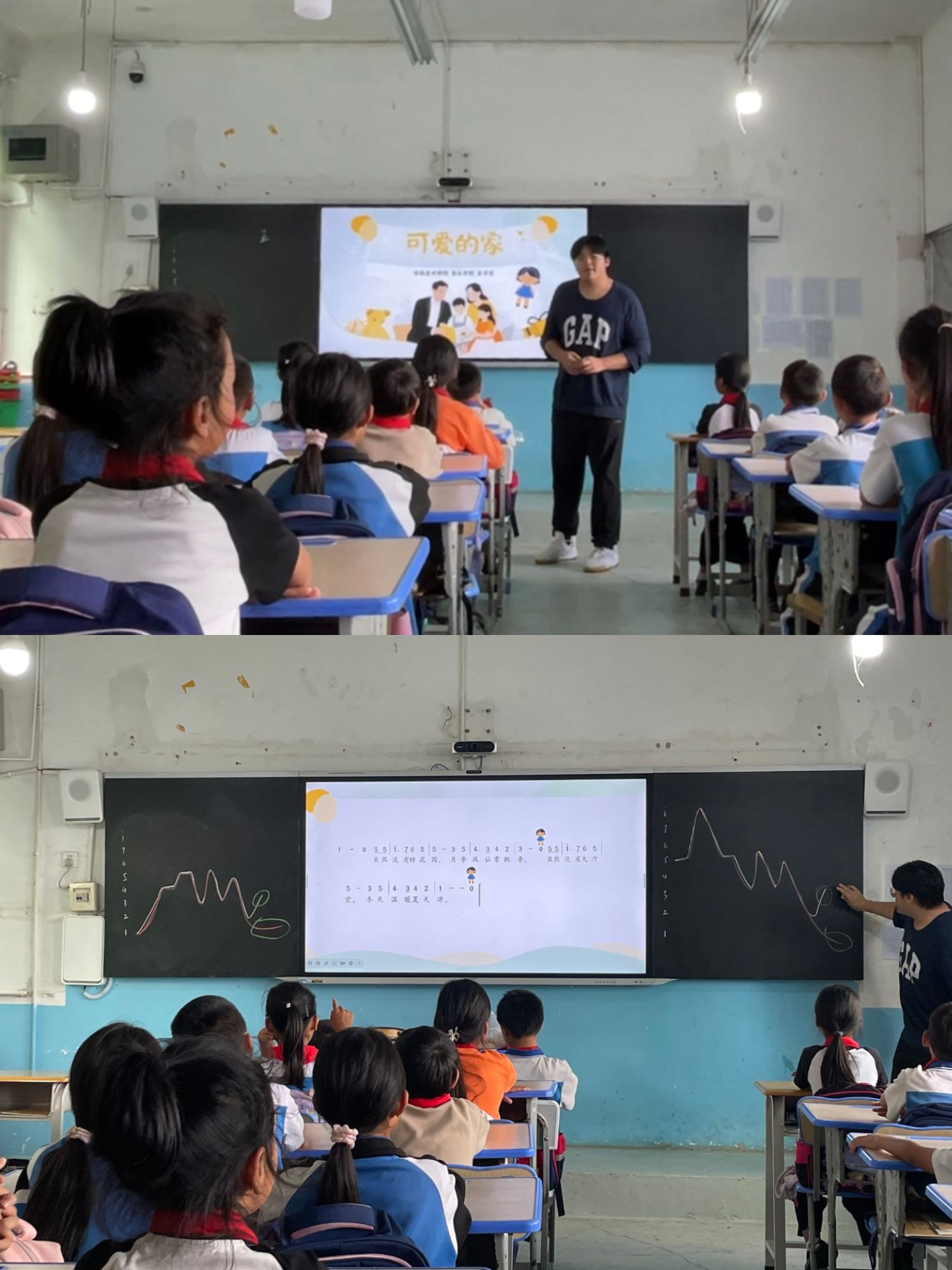 在王子贤同学执教的《可爱的家》一课中,优美的西西里民歌旋律与质朴歌词,成为引导学生从“小家”温情走向“民族大家”团结的感性通道。他创新运用“绘画旋律线”的美育方法,使抽象的旋律化为可视的起伏,让孩子们在歌唱中不仅感受音乐之美,更深化了对歌词情感与家园意象的体验。这堂课成功将音乐课升华为一场深刻的情感教育与文化认同课,生动诠释了美育如何通过感性启发,在孩子们心中筑起家国情怀与民族团结的坚实基础。