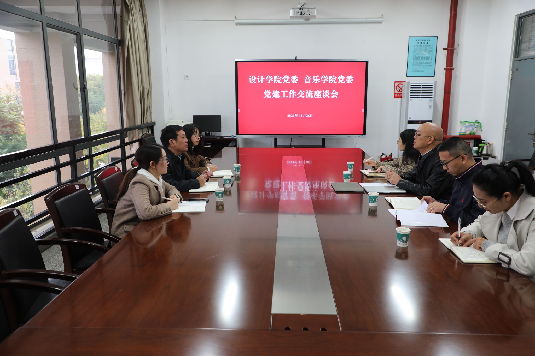 此次党建工作交流以深入学习贯彻习近平总书记关于党的建设的重要思想,贯彻落实党的二十届三中全会精神为主线,双方就积极探索党建工作的新思路新方法,共同谋划党建融合发展新途径,提升党建工作整体水平,进一步加强新形势下基层党组织建设,充实“党建+思政+艺术”品牌内涵等方面进行了交流座谈。双方围绕党委换届、党建与专业融合发展、提升党员教育管理水平、党支部建设、党建引领人才培养质量不断提升等内容进行了详细深入的交流和探讨。